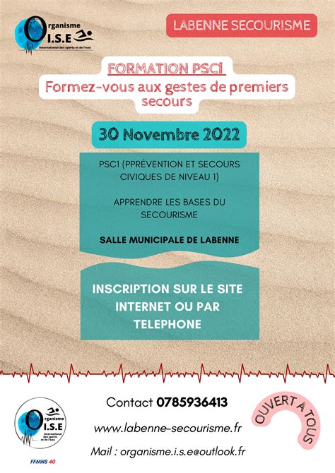 Bonjour, j’ai participé à une révision PSE1,PSE2, dispensée par Labenne secourisme le vendredi 2 décembre 2022. La formation c’est très bien passée dans un cadre adapté à cette activité. Reçu de bon matin avec un petit café gâteau très apprécié, les formateurs ont su être à notre écoute et nous dispenser les dernières recommendations en matière de réglementation et de technique de secourisme. Nous avons pu effectuer des cas concrets avec un matériel adapté et complet. Merci aux formateurs de Labenne secourisme pour ce rafraîchissement en matière d’intervention d’aides aux victimes. Je recommande vivement.